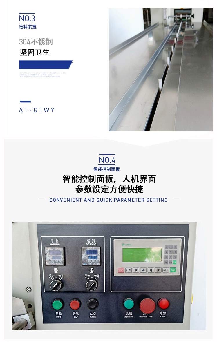 C、先進(jìn)的微電腦包裝控制器,優(yōu)良的人機(jī)對話模式,使速度、袋長、切點位置檢測等都可在界面上直接顯示。